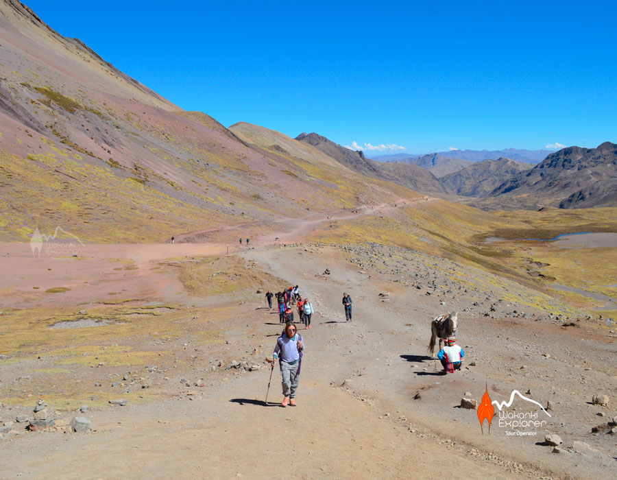 Where we will receive previous indications from our guide and from this place we will begin the trek by 3 hours approximately, where we will appreciate beautiful landscapes among the streams, mountains, lagoons, flora and fauna (South American camelids) until we arrive the highest point of Vinchuca mountain o rainbow mountain ( 5200 mts / 17060.37 ft).